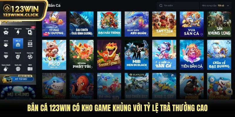Bắn cá 123WIN có kho game khủng với tỷ lệ trả thưởng cao