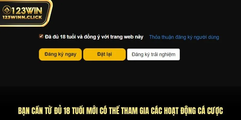 Bạn cần từ đủ 18 tuổi mới có thể tham gia các hoạt động cá cược