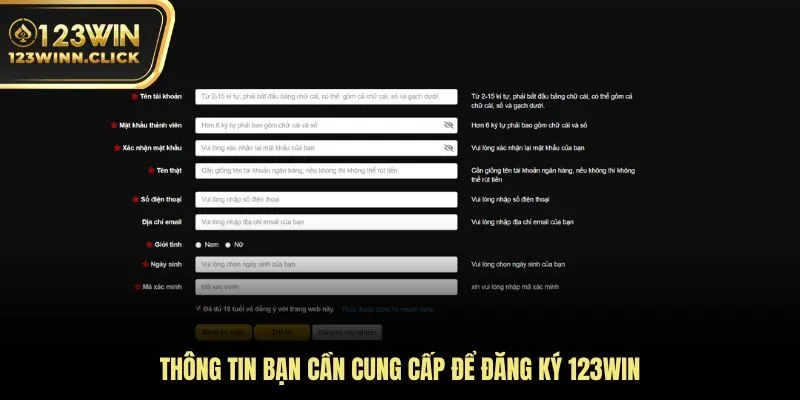 Thông tin bạn cần cung cấp để đăng ký 123WIN